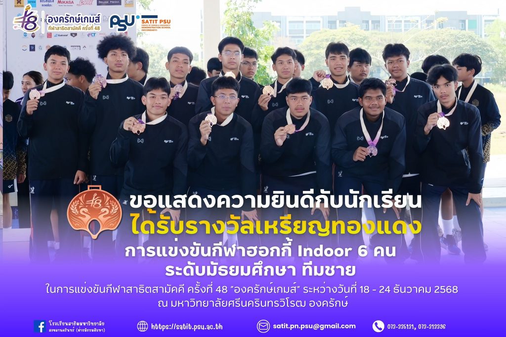 โรงเรียนสาธิตมหาวิทยาลัยสงขลานครินทร์ (ฝ่ายมัธยมศึกษา) ขอแสดงความยินดีกับนักเรียนที่สร้างผลงานยอดเยี่ยมจากการแข่งขันกีฬาสาธิตสามัคคี ครั้งที่ 48 “องครักษ์เกมส์” ระหว่างวันที่ 18 – 24 ธันวาคม 2568 ณ มหาวิทยาลัยศรีนครินทรวิโรฒ องครักษ์ โดยมีผลการแข่งขันดังนี้