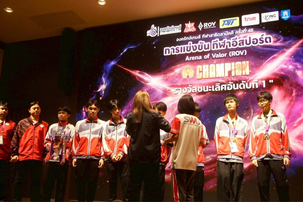 ในโอกาสนี้ นักกีฬาโรงเรียนสาธิตมหาวิทยาลัยสงขลานครินทร์ (ฝ่ายมัธยมศึกษา) สามารถสร้างผลงานได้อย่างน่าภาคภูมิใจ โดยได้รับรางวัล เหรียญทองแดง จากการแข่งขันกีฬา E-Sport ในครั้งนี้ สะท้อนถึงความมุ่งมั่น ความสามารถ และความตั้งใจในการฝึกซ้อมอย่างต่อเนื่อง ตลอดจนการทำงานร่วมกันเป็นทีมอย่างมีประสิทธิภาพ