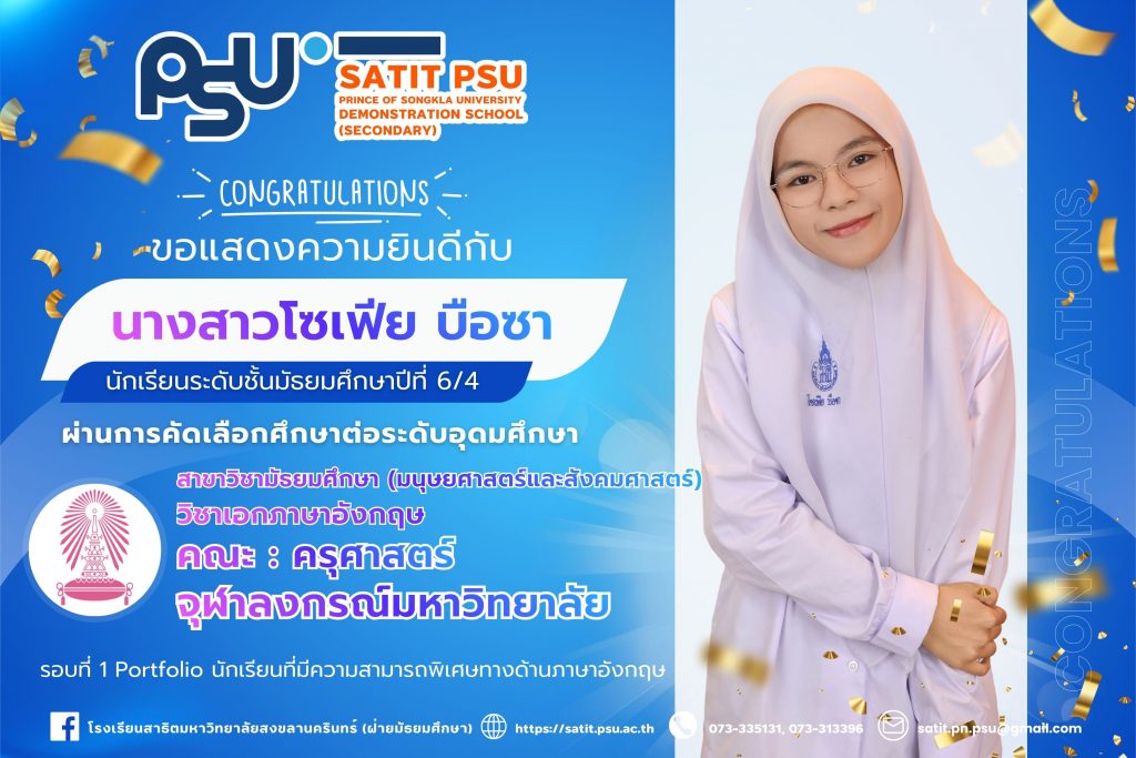 โรงเรียนสาธิตมหาวิทยาลัยสงขลานครินทร์ (ฝ่ายมัธยมศึกษา) ขออวยพรให้นักเรียนทุกคนประสบความสำเร็จในการศึกษาต่อ และเติบโตสู่อนาคตที่สดใสต่อไป 🌟