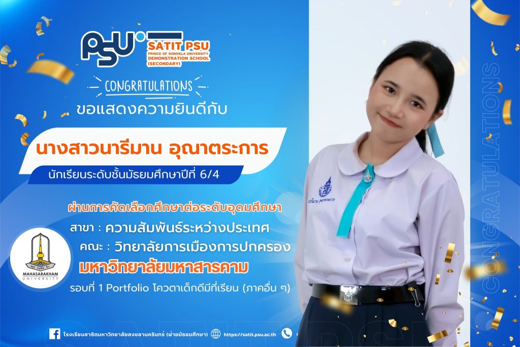 โรงเรียนสาธิตมหาวิทยาลัยสงขลานครินทร์ (ฝ่ายมัธยมศึกษา) ขอแสดงความยินดีกับ