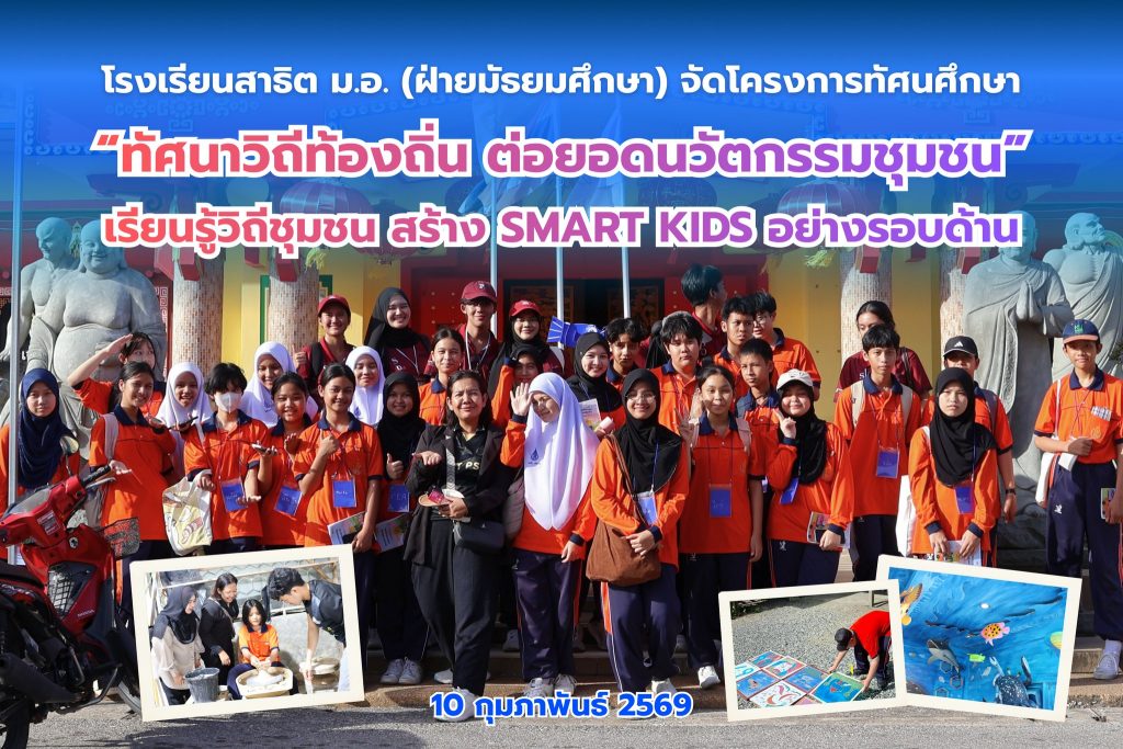 วันที่ 10 กุมภาพันธ์ 2569 โรงเรียนสาธิตมหาวิทยาลัยสงขลานครินทร์ (ฝ่ายมัธยมศึกษา) จัดโครงการทัศนศึกษา “ทัศนาวิถีท้องถิ่น ต่อยอดนวัตกรรมชุมชน” ครั้งที่ 2 สำหรับนักเรียนชั้นมัธยมศึกษาปีที่ 1 เพื่อเปิดโอกาสให้ผู้เรียนได้เรียนรู้จากแหล่งเรียนรู้ในชุมชนจริง เชื่อมโยงองค์ความรู้กับการปฏิบัติ พร้อมพัฒนาทักษะการคิดวิเคราะห์ การแก้ปัญหา และการสร้างสรรค์นวัตกรรม มุ่งสู่การพัฒนาผู้เรียนให้เป็น Smart Kids อย่างรอบด้าน