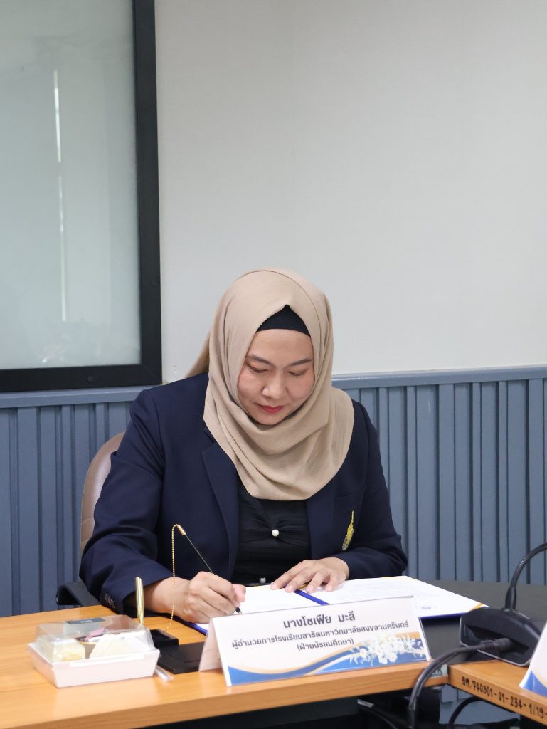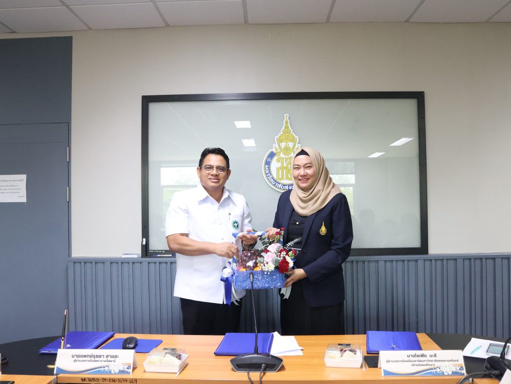 พร้อมด้วย นายแพทย์รุซตา สาและ ผู้อำนวยการโรงพยาบาลปัตตานี และ นางโซเฟีย มะลี ผู้อำนวยการโรงเรียนสาธิตมหาวิทยาลัยสงขลานครินทร์ (ฝ่ายมัธยมศึกษา) ร่วมลงนามในบันทึกข้อตกลง