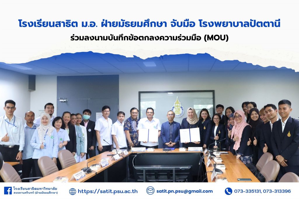 โรงเรียนสาธิต ม.อ. ฝ่ายมัธยม จับมือ โรงพยาบาลปัตตานี ร่วมลงนามบันทึกข้อตกลงความร่วมมือ (MOU) สานความร่วมมือทางการศึกษา พัฒนาผู้เรียนสู่การเรียนรู้เชิงประสบการณ์