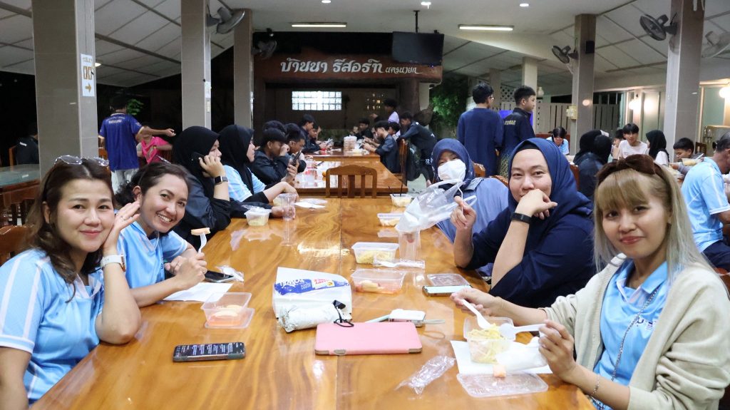 ภายหลังการประชุม มีการรับประทานอาหารค่ำพร้อมกัน โดยได้รับการสนับสนุนจากสมาคมศิษย์เก่าโรงเรียนสาธิต ม.อ. (ฝ่ายมัธยมศึกษา) บรรยากาศเป็นไปด้วยความอบอุ่น เต็มไปด้วยรอยยิ้ม ความภาคภูมิใจ และความผูกพัน สะท้อนถึงพลังแห่งความสามัคคีและน้ำใจนักกีฬาที่เกิดขึ้นตลอดการแข่งขัน