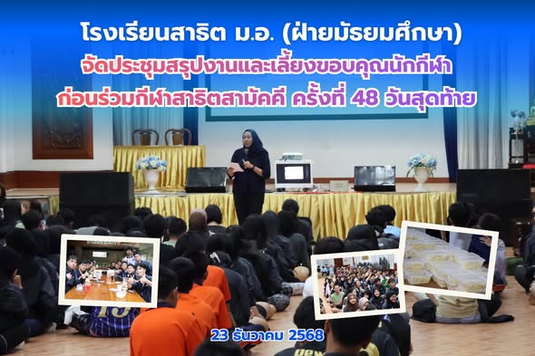การประชุมดังกล่าวเปิดโอกาสให้นักกีฬา ผู้ฝึกสอน และสตาฟฟ์จากแต่ละชนิดกีฬาได้ร่วมสะท้อนประสบการณ์ ความมุ่งมั่นตั้งใจ ความสามัคคี รวมถึงบทเรียนที่ได้รับจากการแข่งขัน อันเป็นประโยชน์ต่อการพัฒนาศักยภาพด้านกีฬาและคุณลักษณะอันพึงประสงค์ของนักเรียน พร้อมรับชมวิดิทัศน์ประมวลภาพบรรยากาศพร้อมกัน