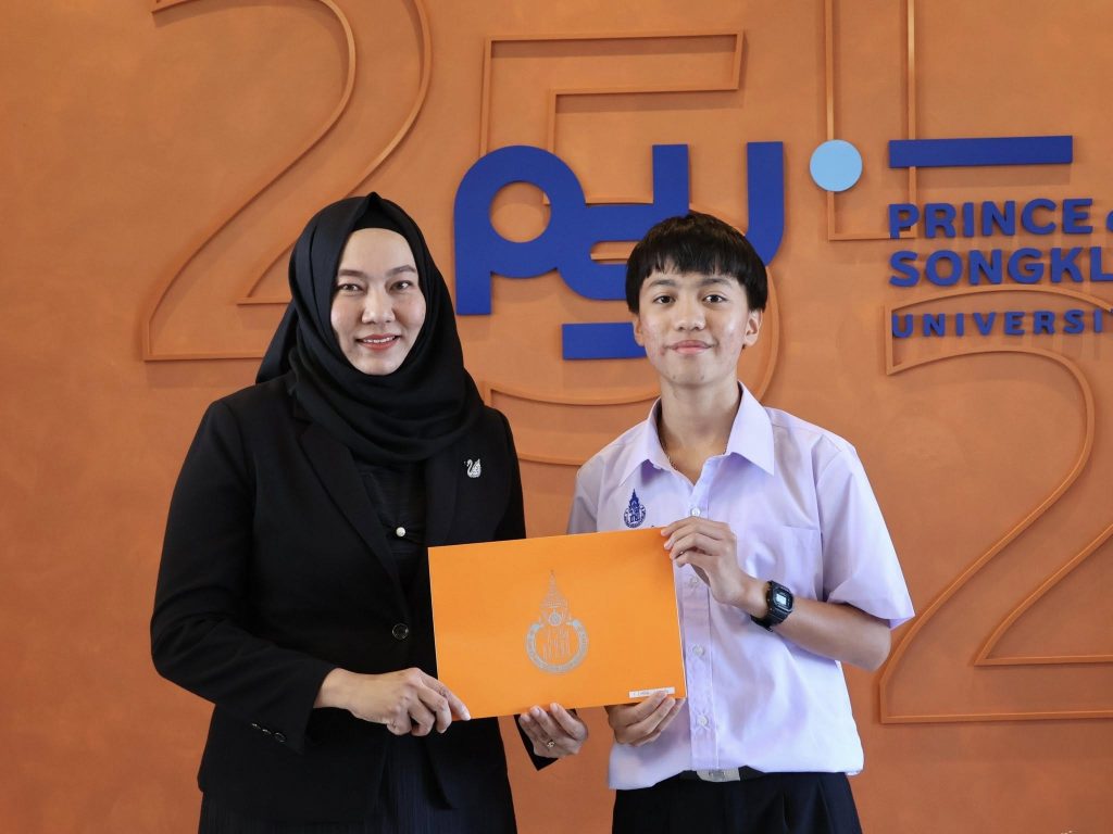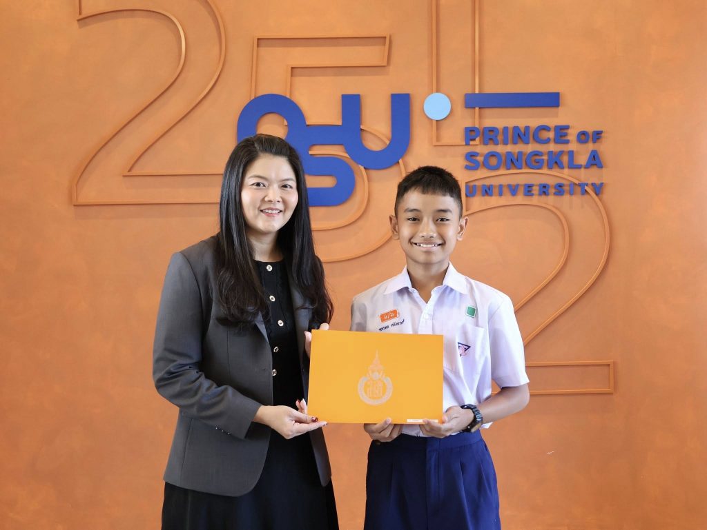 วันนี้ (6 มกราคม 2569) โรงเรียนสาธิตมหาวิทยาลัยสงขลานครินทร์ (ฝ่ายมัธยมศึกษา) จัดพิธีมอบเกียรติบัตรเพื่อแสดงความยินดีกับนักเรียนสอบได้คะแนนรวมสูงสุด 10 ลำดับในการสอบคัดเลือกนักเรียนเพื่อเข้าศึกษาต่อชั้นมัธยมศึกษาปีที่ 1 และมัธยมศึกษาปีที่ 4 และการทดสอบความรู้ทางวิชาการเพื่อเตรียมความพร้อมสำหรับระดับประถมศึกษาและมัธยมศึกษาตอนต้น ประจำปีการศึกษา 2569 ณ ห้อง co-working space อาคาร 11 โรงเรียนสาธิตมหาวิทยาลัยสงขลานครินทร์ (ฝ่ายมัธยมศึกษา)