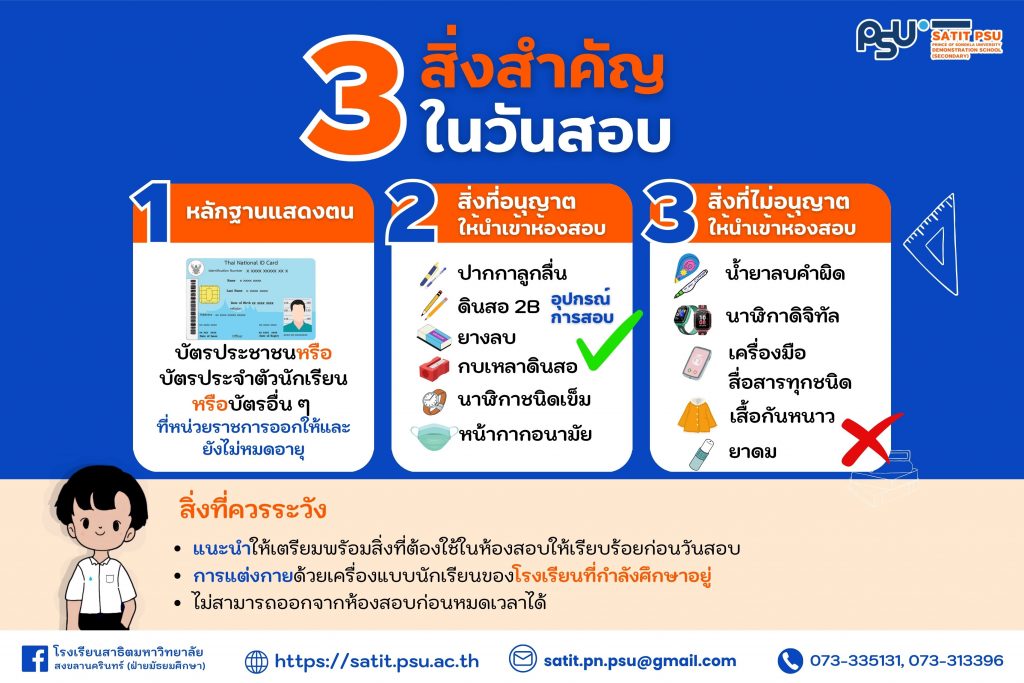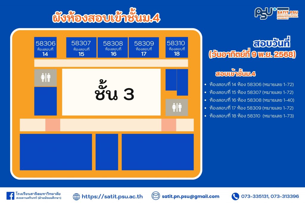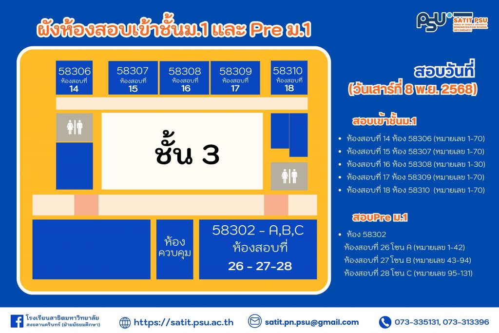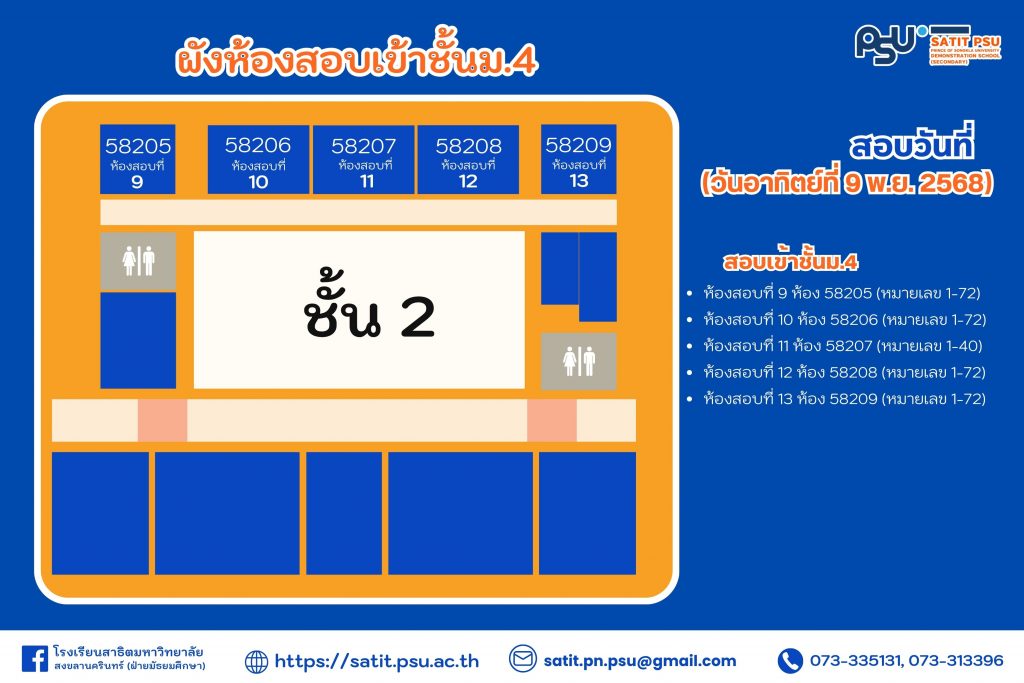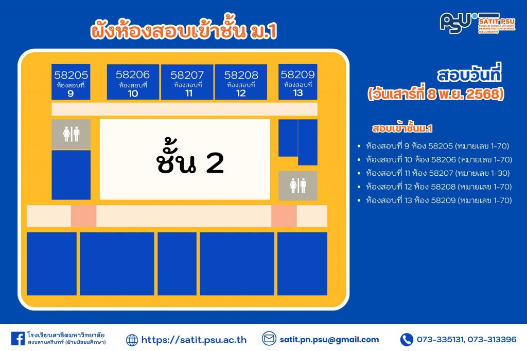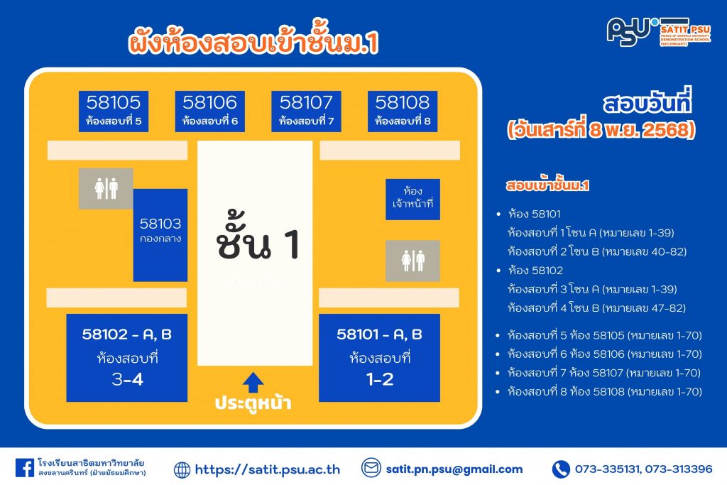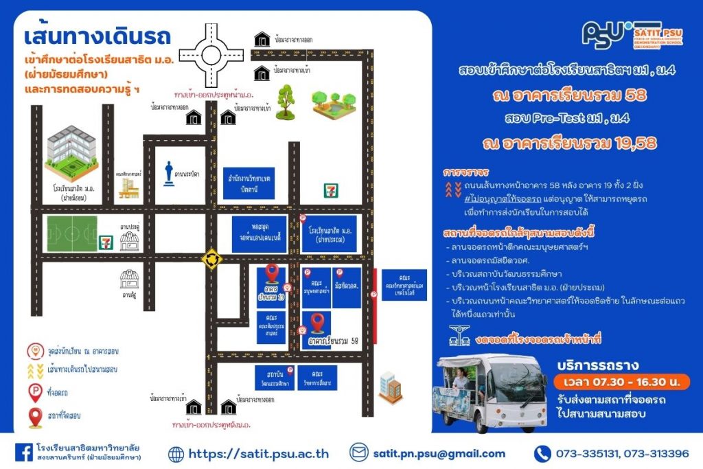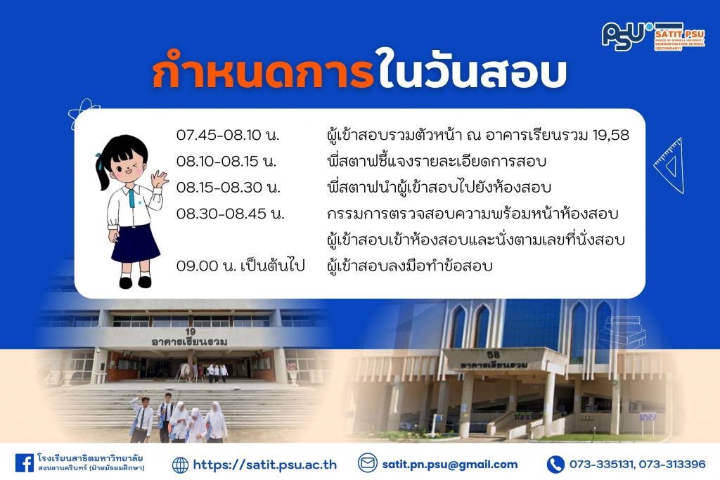 - สอบเข้าศึกษาต่อโรงเรียนสาธิตฯ ม.1 , ม.4 จัดสอบ ณ อาคารเรียนรวม 58 มหาวิทยาลัยสงขลานครินทร์ วิทยาเขตปัตตานี
