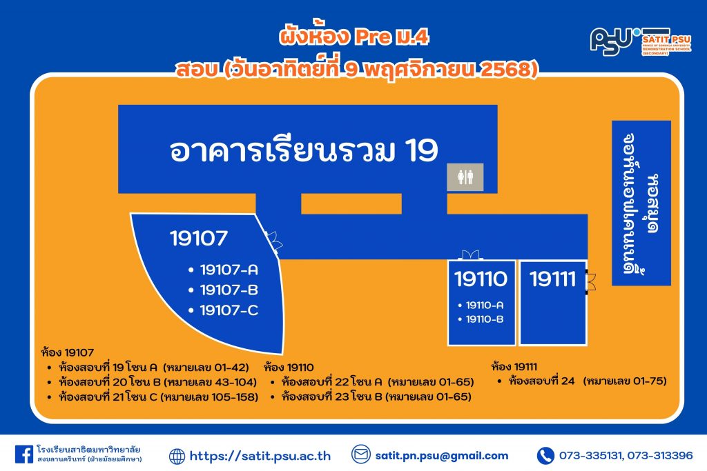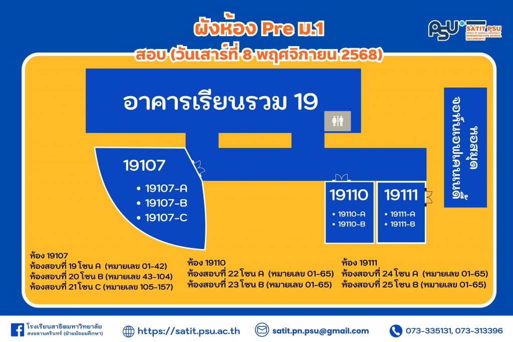 สอบ Pre-Test ชั้น ม.1 จัดสอบ ณ อาคารเรียนรวม 19 และ58